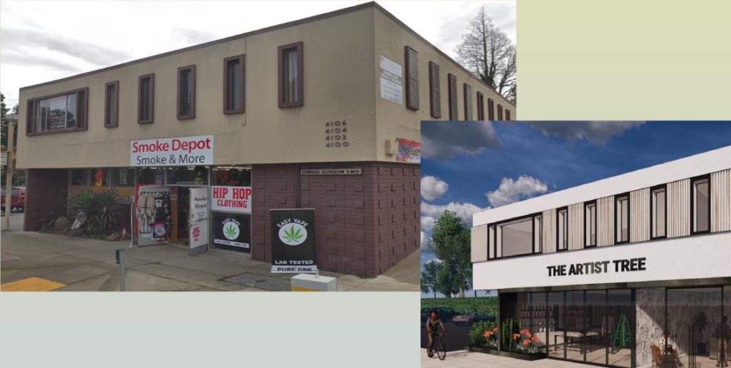 Also invited to apply to operate is The Artist Tree, a storefront cannabis retail dispensary proposed for 4100 San Pablo Ave. in El Sobrante. The property, currently a smoke shop, would undergo significant improvements under Artist Tree’s proposal.