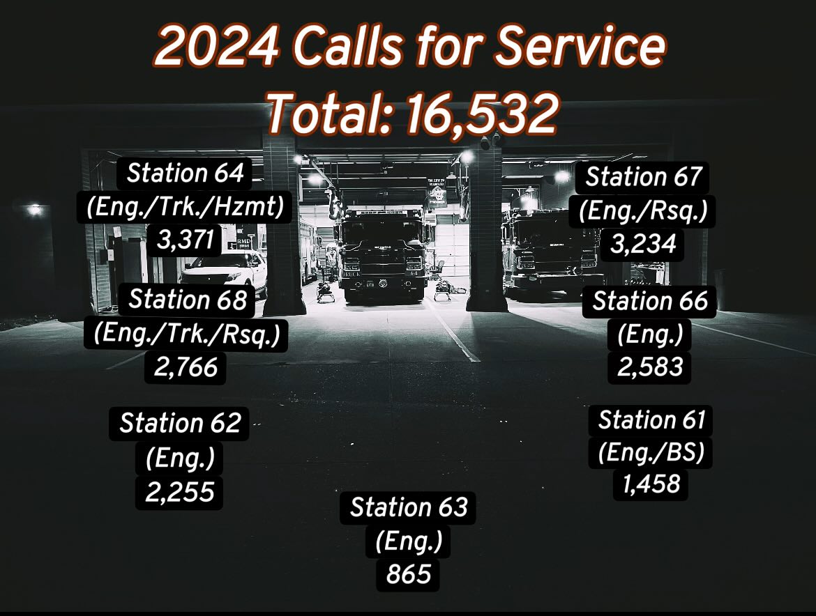 Richmond firefighters responded to 16,532 calls for emergency services in 2024, averaging just over 45 calls for service per day, an increase of 4.5 percent from 2023, according to Richmond Firefighters Local 188, which recently published the year-end report online.
