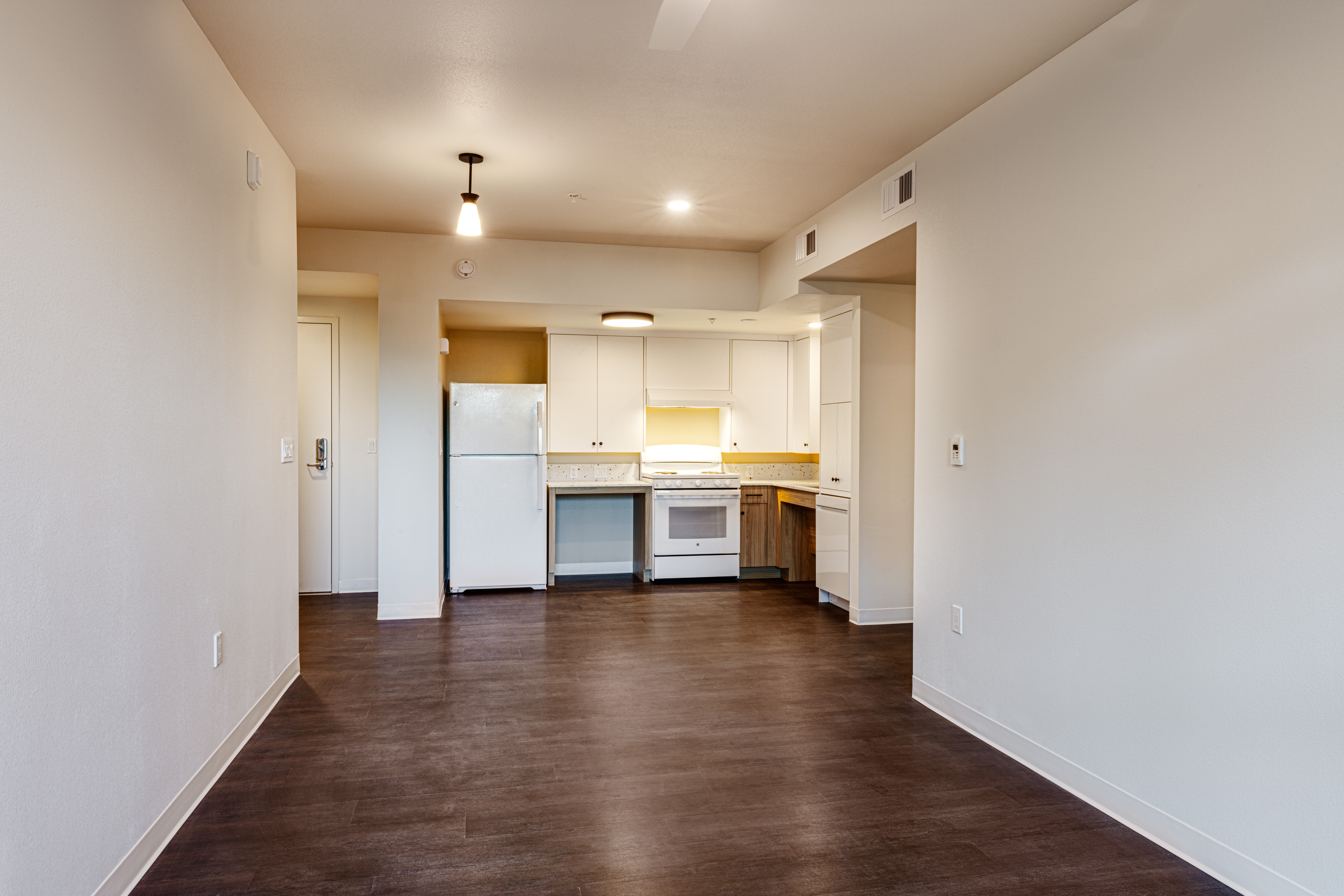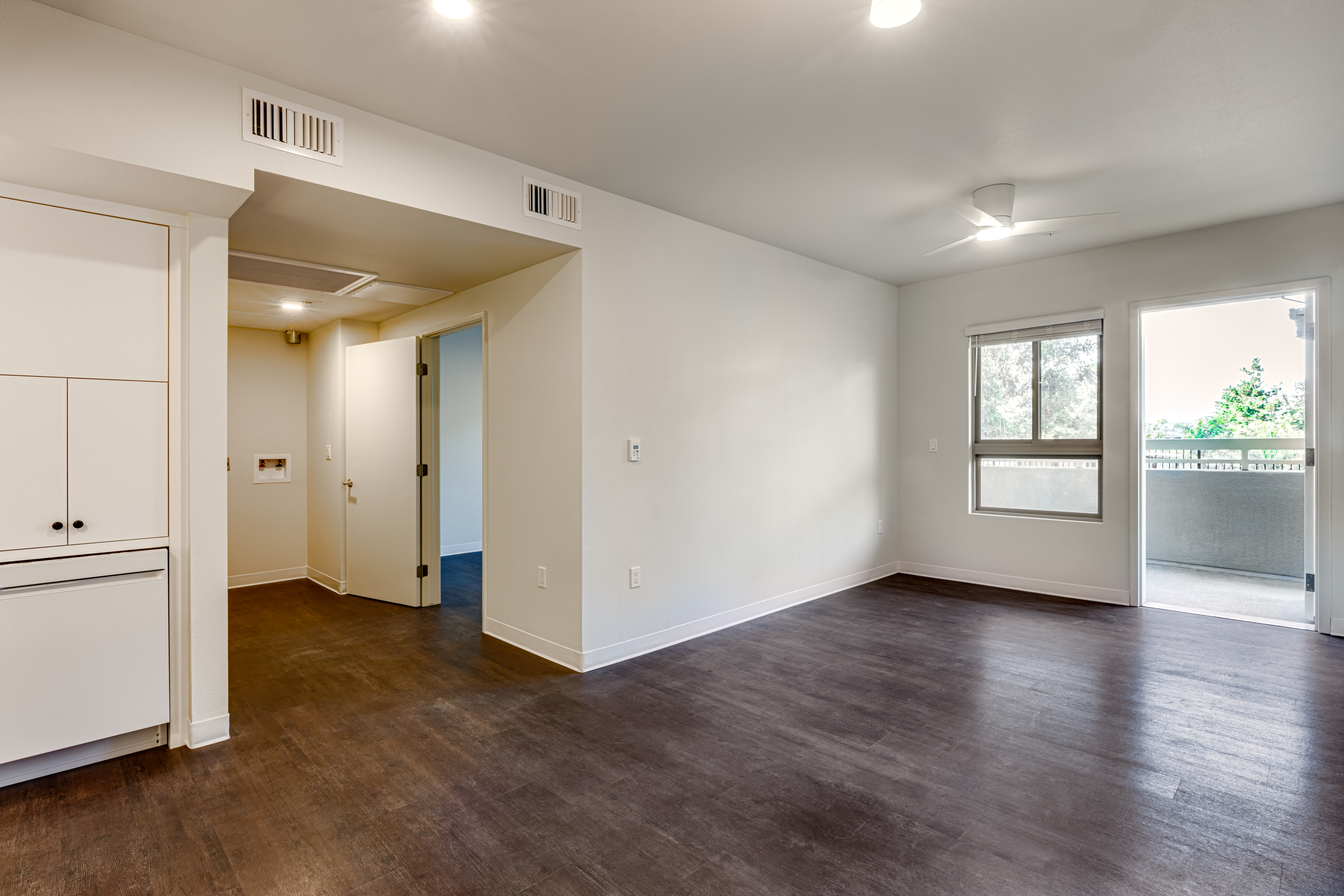 Studio, one and two bedroom units are offered, all of which include private balconies, in-unit washer/dryer hookups and dishwashers.