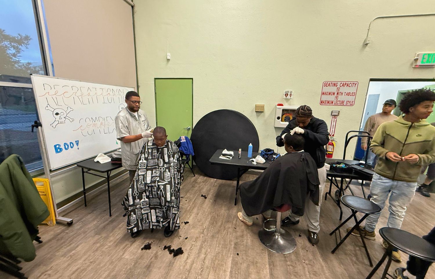 Midway through the celebration, the gym turned into a youth barbering expo, where young people showed off fades, line-ups and trims. The crowd cheered as kids demonstrated confidence and skill.