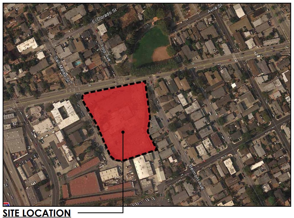 The site has a long and complex development history spanning over two decades. The property has remained vacant since closure of the Dolan Lumber Yard. Over the years, the site has cycled through several failed housing proposals: in 2015, the city initially approved a five-story, 155-unit affordable housing complex, which was delayed by legal challenges and eventually stalled due to economic viability concerns. By 2018, the developer returned with a proposal for 46 units, similar to the current plan, but it also failed to move forward. Most recently, in July 2023, the city approved a much larger 393-unit apartment building under state streamlining law SB 35, though that project never reached the construction phase. The current Cascade Townhome project represents a return to a lower-density design for a parcel that has remained empty despite ten years of shifting residential plans.