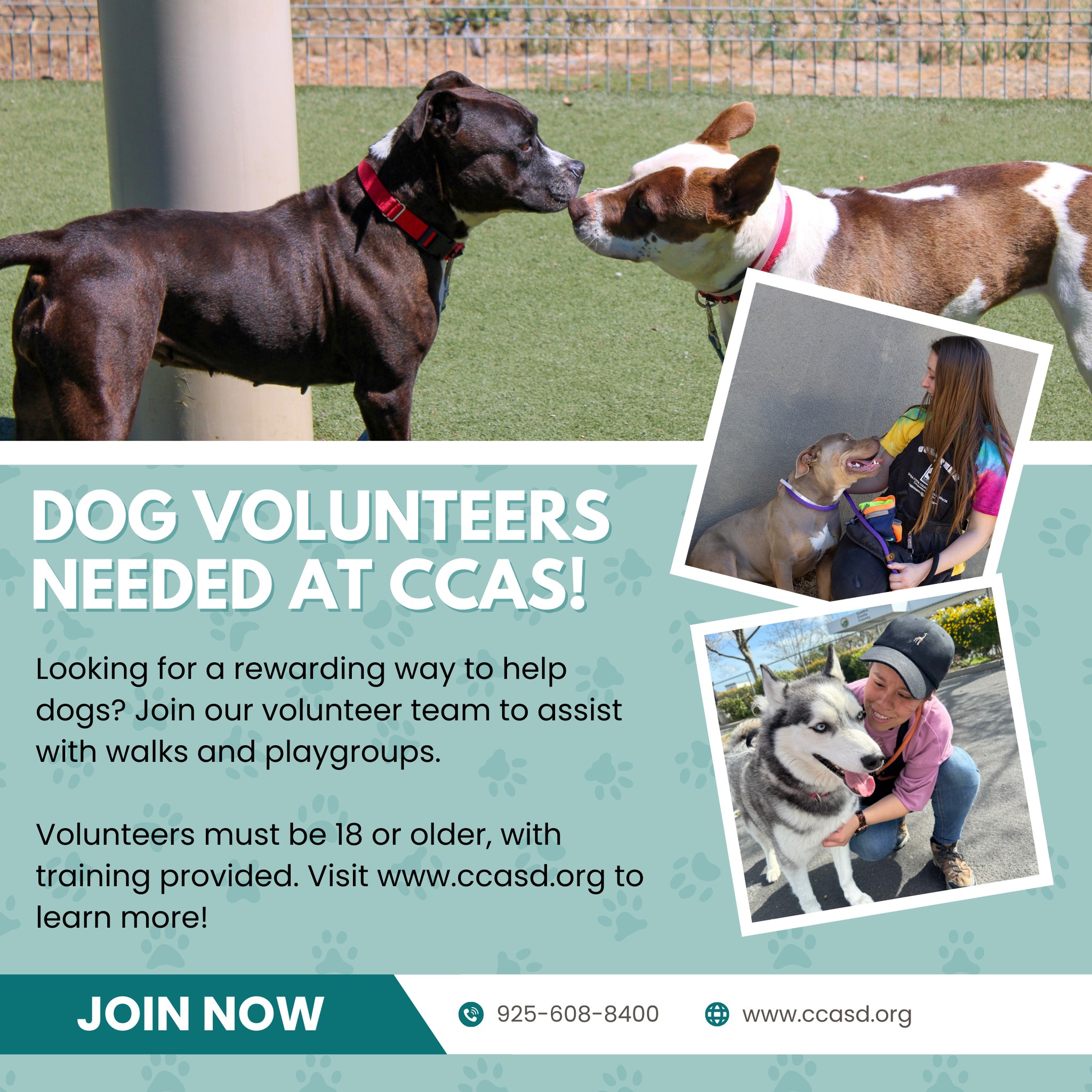 Got a New Year’s resolution centered on making a difference in the community? Contra Costa Animal Services (CCAS) is seeking volunteers, who are integral to its operations.