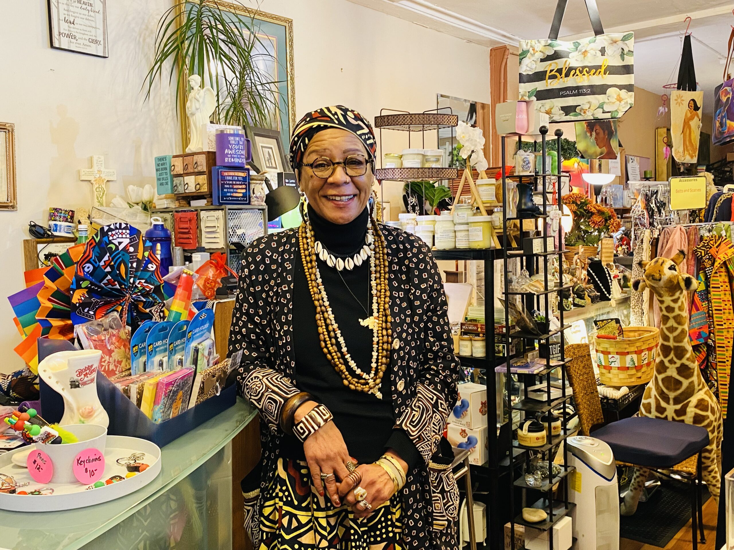 Near the mall’s Harbour Way entrance, Ghaliyah Roberts-Palmer of Gratitude LLC, an Afrocentric gift store, was ready to welcome us with a smile. Just the day before, this reporter spotted Linda Whitmore at the annual Black History Month celebration at Chevron Richmond wearing a vibrant top she said was from this shop.