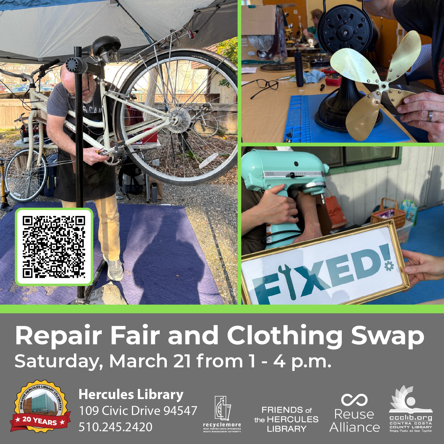The Hercules Library will host a free Repair Fair on Saturday, March 21, from 1-4 p.m.