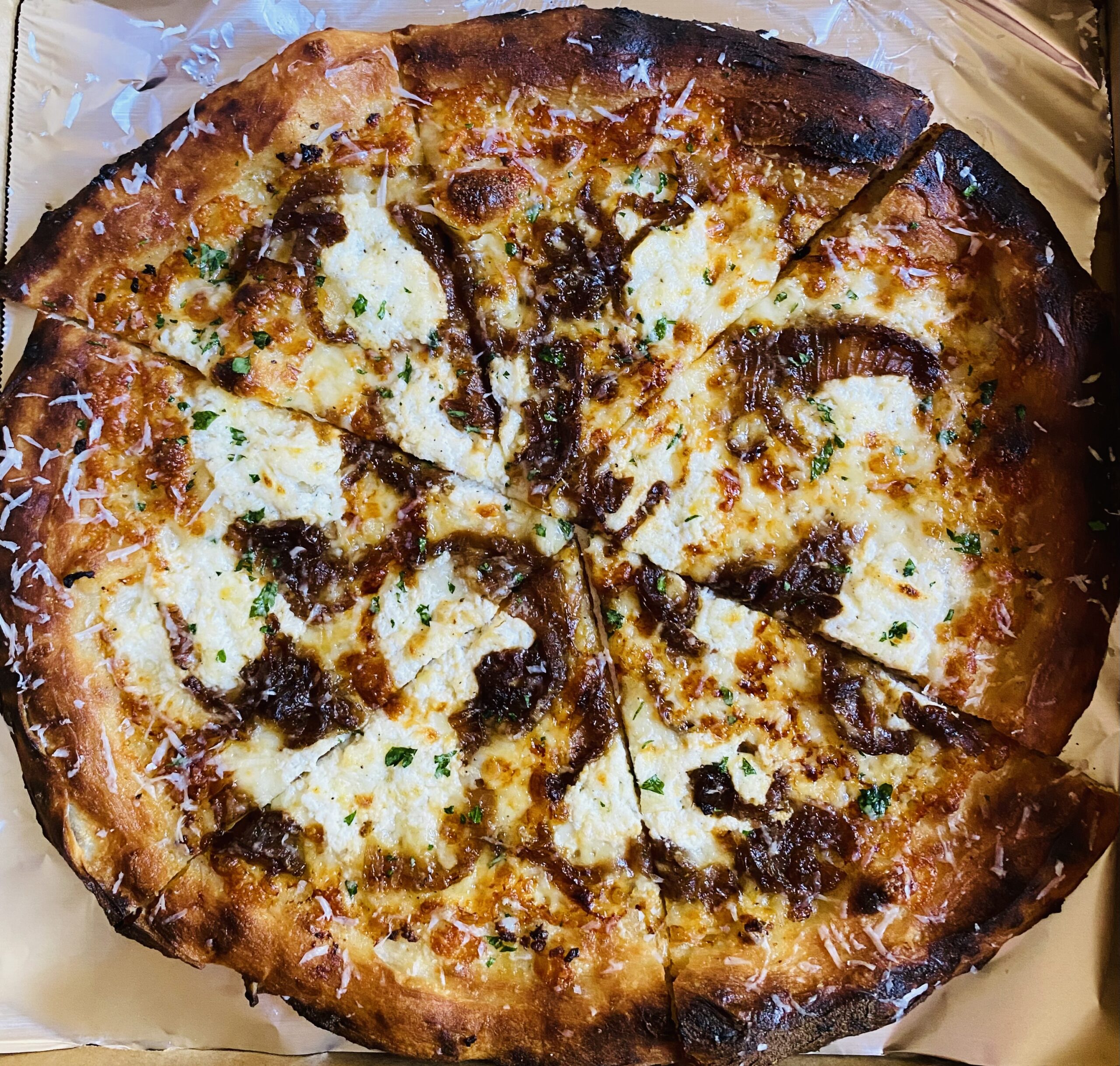 Among the most popular pies is the “Brooklyn,” which features an olive oil and garlic base, whipped ricotta, caramelized onions, and five cheeses. For customers who want to try Hataye’s red sauce—a more robust, sofrito‑based take—he recommends the “Four Way,” a cheese pizza finished with sauce on top to highlight its depth.