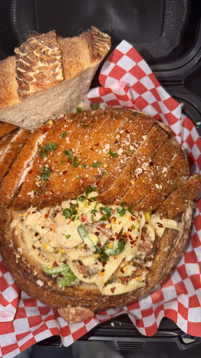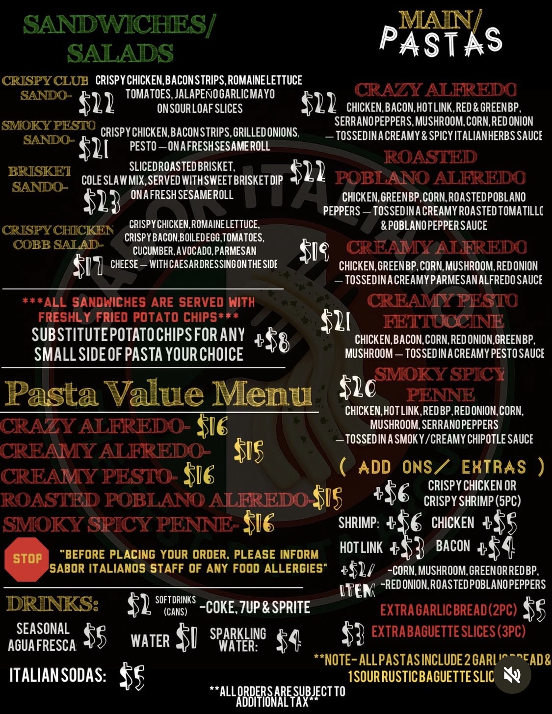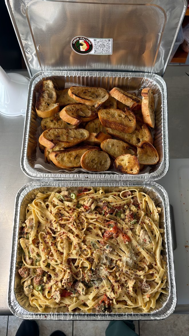 According to Omar, the family uses homemade sauces and Acme bread, giving it that special Italian touch. Menu favorites range from the Crazy Alfredo, to the Brisket Sandwich, to the Spicy Penne. He said customers can also order any of their pastas in an Acme sourdough bowl, which is really popular. Agua Frescas are also available for sale.