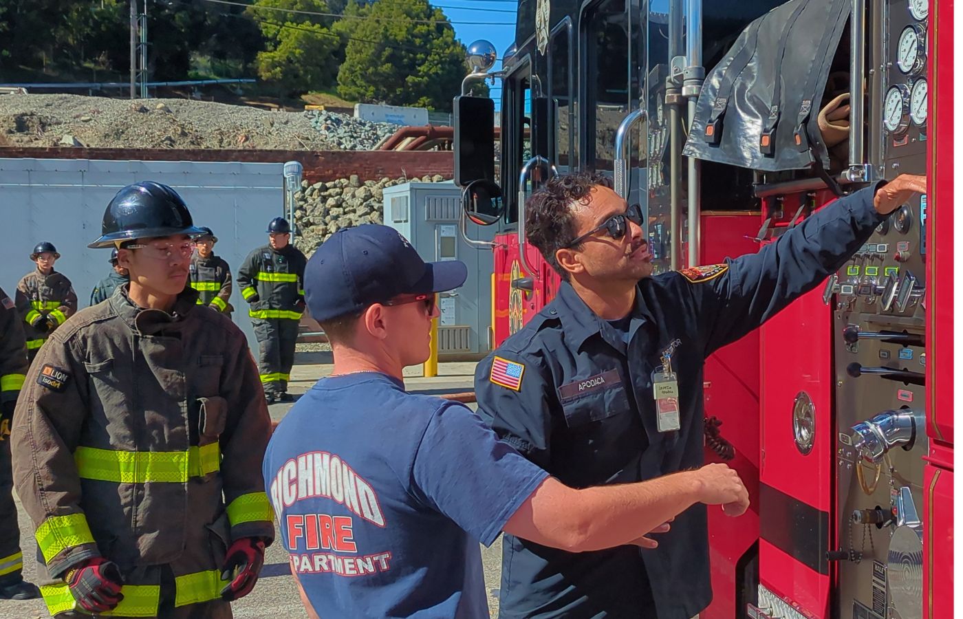 Led by Chevron Fire Battalion Chief Charles Escalante and Richmond Fire Department Firefighter Adam Ramirez, the training included an overview of Chevron Fire Department’s 12-hour shift structure, as well as its specialized quick attack monitor trucks that quickly contain fires and prevent them from spreading during the initial minutes of an emergency. Escalante hosted the academy for the first time to introduce cadets to technologies and processes they would not typically see in a municipal firehouse.