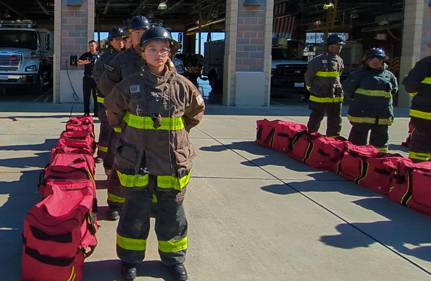 The session featured rigorous physical drills that mirror professional academy standards. Cadets practiced turnout drills which require donning full gear and air packs in under 90 seconds.