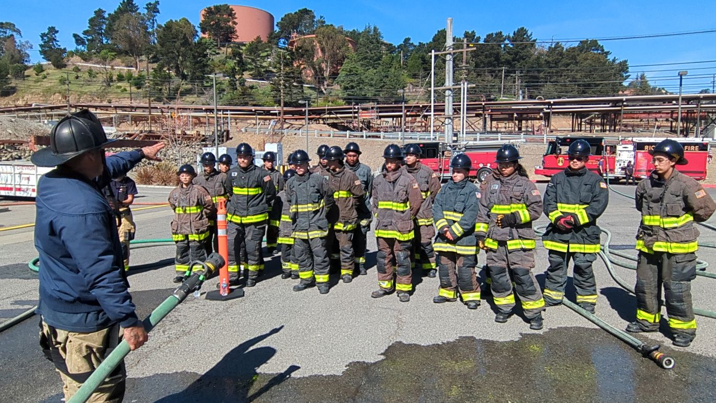 The four-hour training session on March 28 marked a new partnership between the Richmond Fire Youth Academy and Chevron Fire Department designed to give local students a look at the specialized world of industrial firefighting.