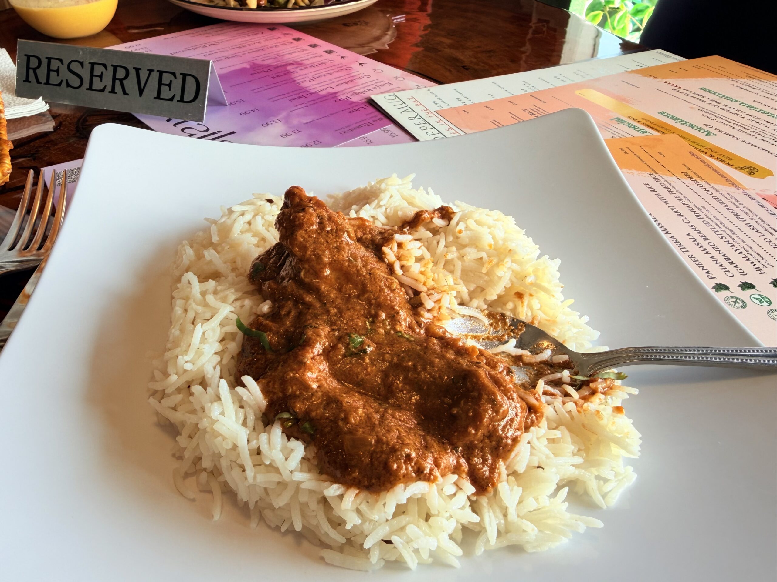 This reporter, a Richmond resident, dined with my family during the filming. I ordered the Chicken Tikka Masala with Rice, which was flavorful with rich depth from the many spices. My husband, Zach Chouteau, ordered the Chicken Momos, which he said were “quite good” and would order them again. Our son, Logan, ordered the Loaded Samosa Chaat—described on the menu as a twist on Indian street food—and loved it.