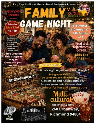 Tamara Shiloh of the Multicultural Bookstore & Gifts and ChuckT of Rich City Studios are teaming up to bring a monthly “Family Game Night” to the community, designed to give parents some downtime while kids have a game-filled evening.