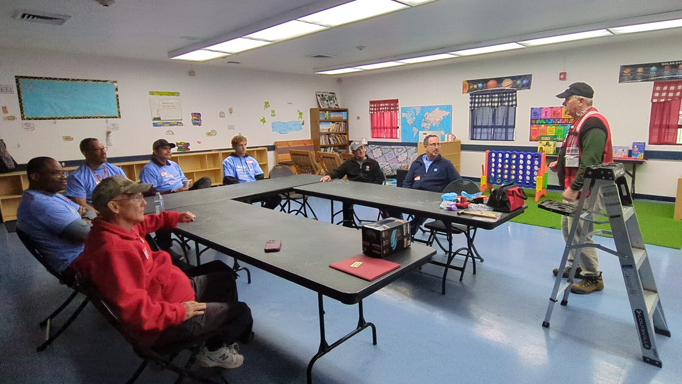 The event began with a morning assembly where teams were organized and briefed on their assignments. Volunteers from the Red Cross, the local community, Chevron Richmond, and construction management company Vanir formed three-person teams consisting of an installer, a documenter, and an educator.