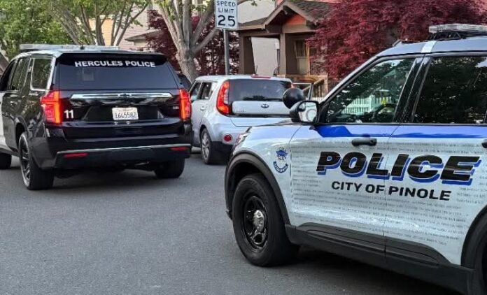 The incident unfolded about 4:31 a.m., when Hercules and Pinole police responded to the 2000 block of Railroad Avenue in Hercules after an off-duty officer spotted two masked individuals attempting to break into vehicles. A responding Hercules officer arrived quickly and saw the suspects fleeing the area on foot.