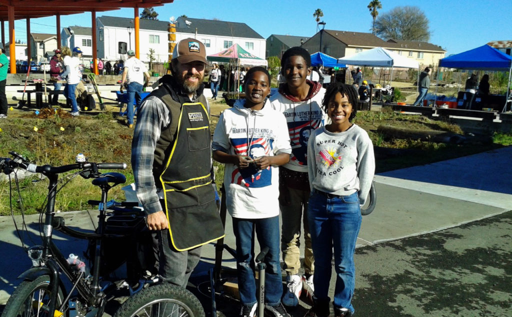 Work was done near the new BMX park “Dirt World,” and also next to Unity Park, where a moment of silence was held in honor of Dr. King at noon, and where the nonprofit Rich City Rides repaired bicycles for donation and had volunteers build out its evolving Bike Hub.