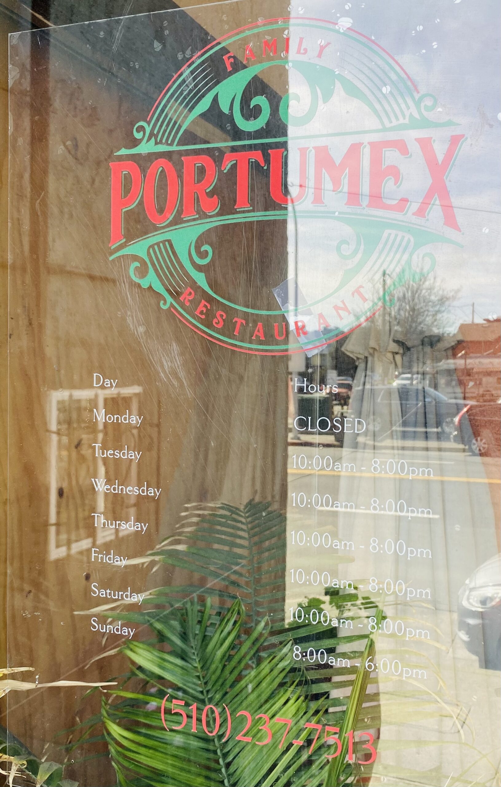Portumex is closed on Mondays; its hours of operation are Tuesday through Saturday from 10 a.m. to 8 p.m. and on Sunday from 8 a.m. to 6 p.m. Aside from restaurant service, it caters events. Questions? Call (510) 237-7513. Want delivery? Find Portumex on DoorDash and Grubhub too.