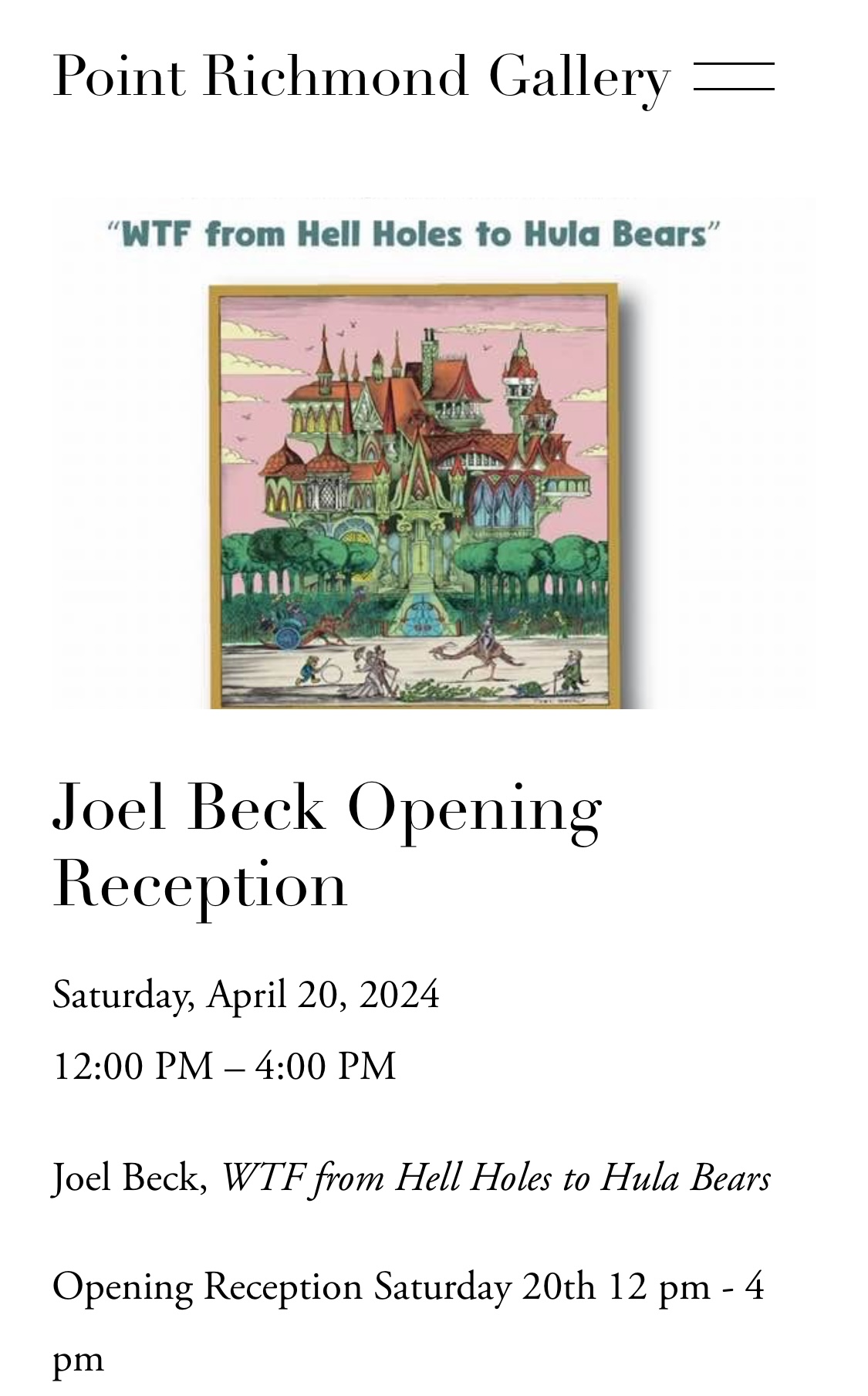 The Point Richmond Gallery is set to host an opening reception for late cartoonist and artist Joel Beck’s exhibition “WTF from Hell Holes to Hula Bears” Saturday, April 20 from 12-4 p.m.
