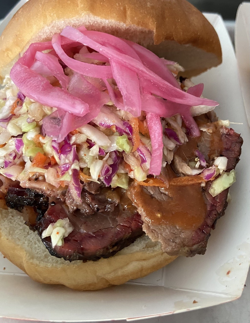 Aside from the tasty menu items, Friedrich also sells BBQ sauce at his engagements, including one that’s a traditional ketchup-based, sweet & spicy option, and another that’s a mustard-vinegar sauce that he serves with his brisket. This reporter sampled Pickles N’ Smoke’s traditional sauce and found it to be flavorful with just the right amount of kick.