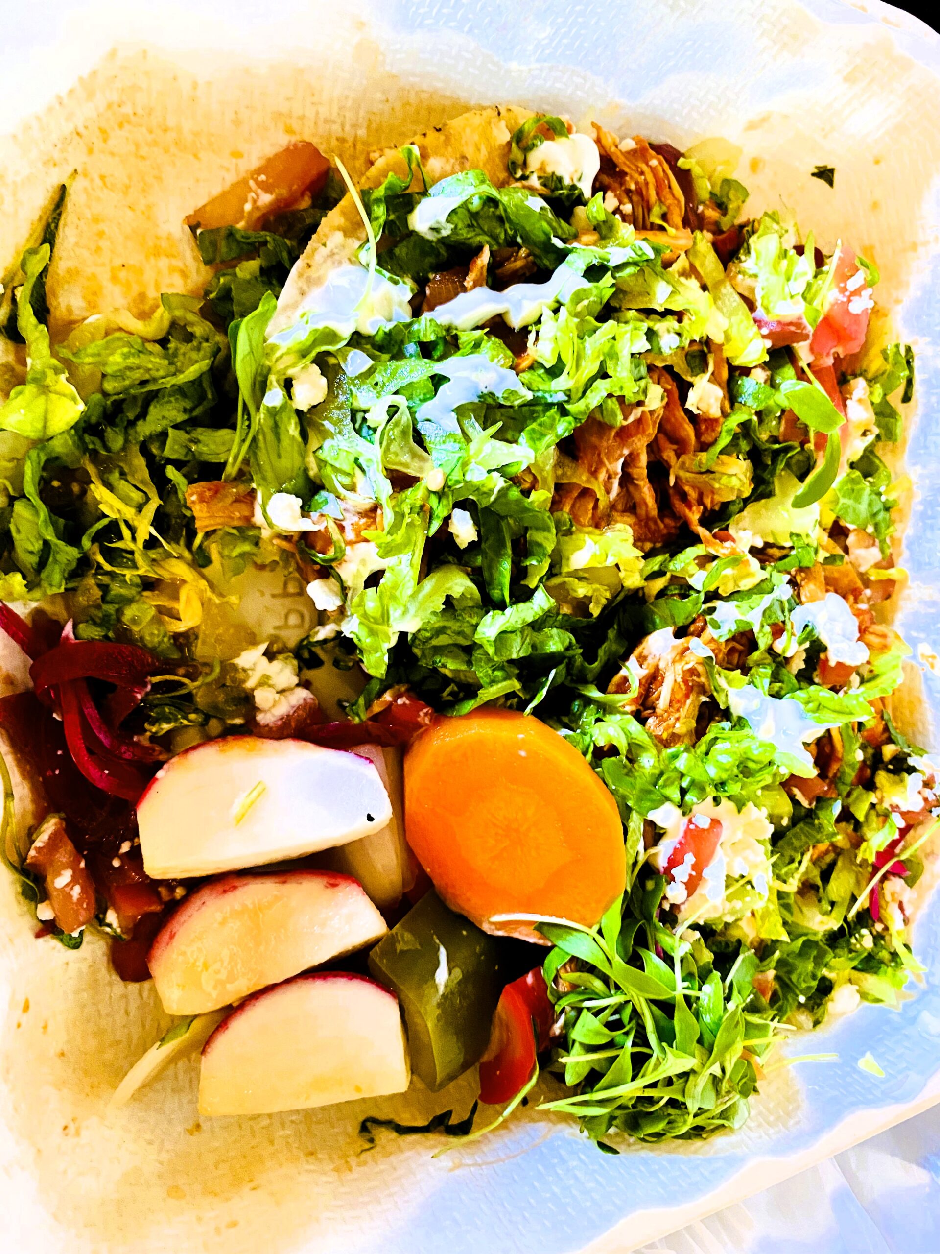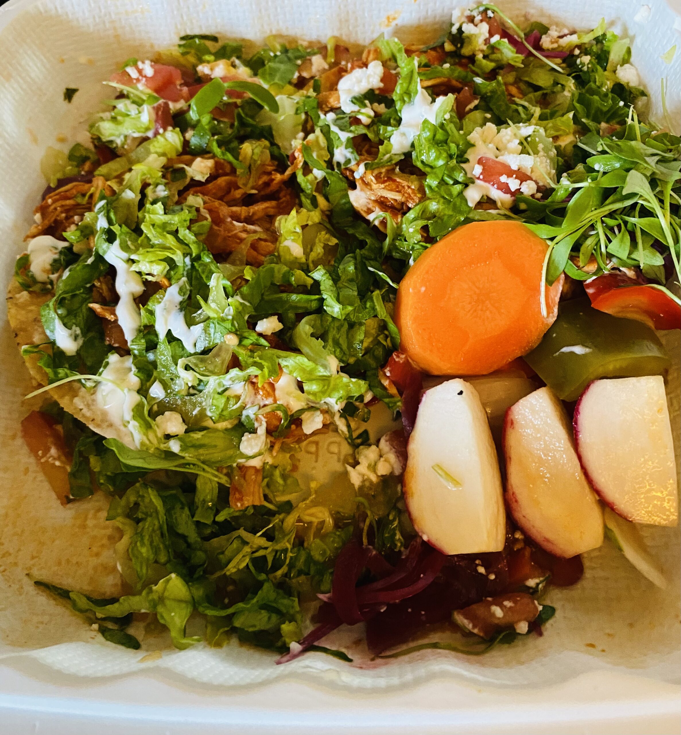 After much deliberation, we ordered the quesabirria tacos (3), with birra consume, melted cheese and shredded birria meat for $16.95 and the chicken tinga tostaditas, with shredded chicken in chipotle sauce, refried beans, lettuce, crema, salsa & queso for $16.25. Both dishes, taken to-go, were equally delicious, with my son deeming the quesabirrias as standing up against some of the best in town.
