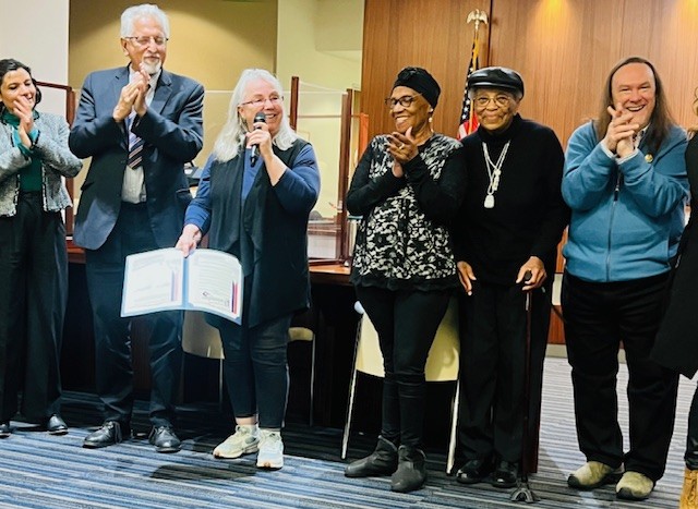 Mayor Eduardo Martinez and Councilmember Gayle McLaughlin presented a proclamation to Commissioners Michelle Hayes (chair), Myrtle Braxton (vice-chair), Bryan Harris (secretary), Regina Whitney, Kiran Agarwal, Gerry La Londe-Berg, and Cate Burkhart (who attended virtually).