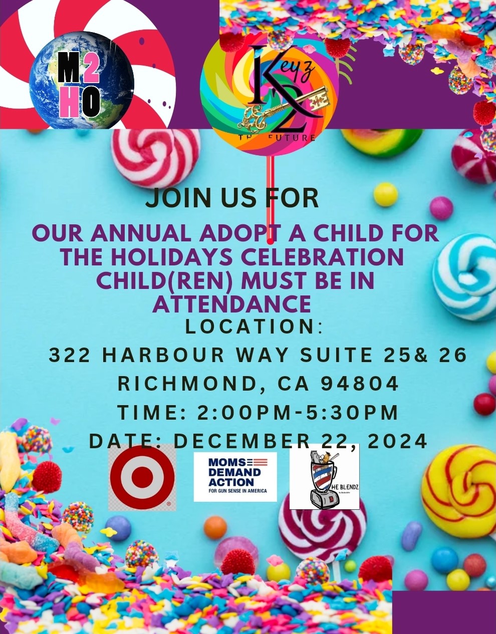 From 2-5:30 p.m. on Sunday, Dec. 22, Keyz 2 The Future and its partners will host the 5th Annual Adopt a Child for the Holidays Celebration at 322 Harbour Way, Suite 25 & 26, in Richmond.