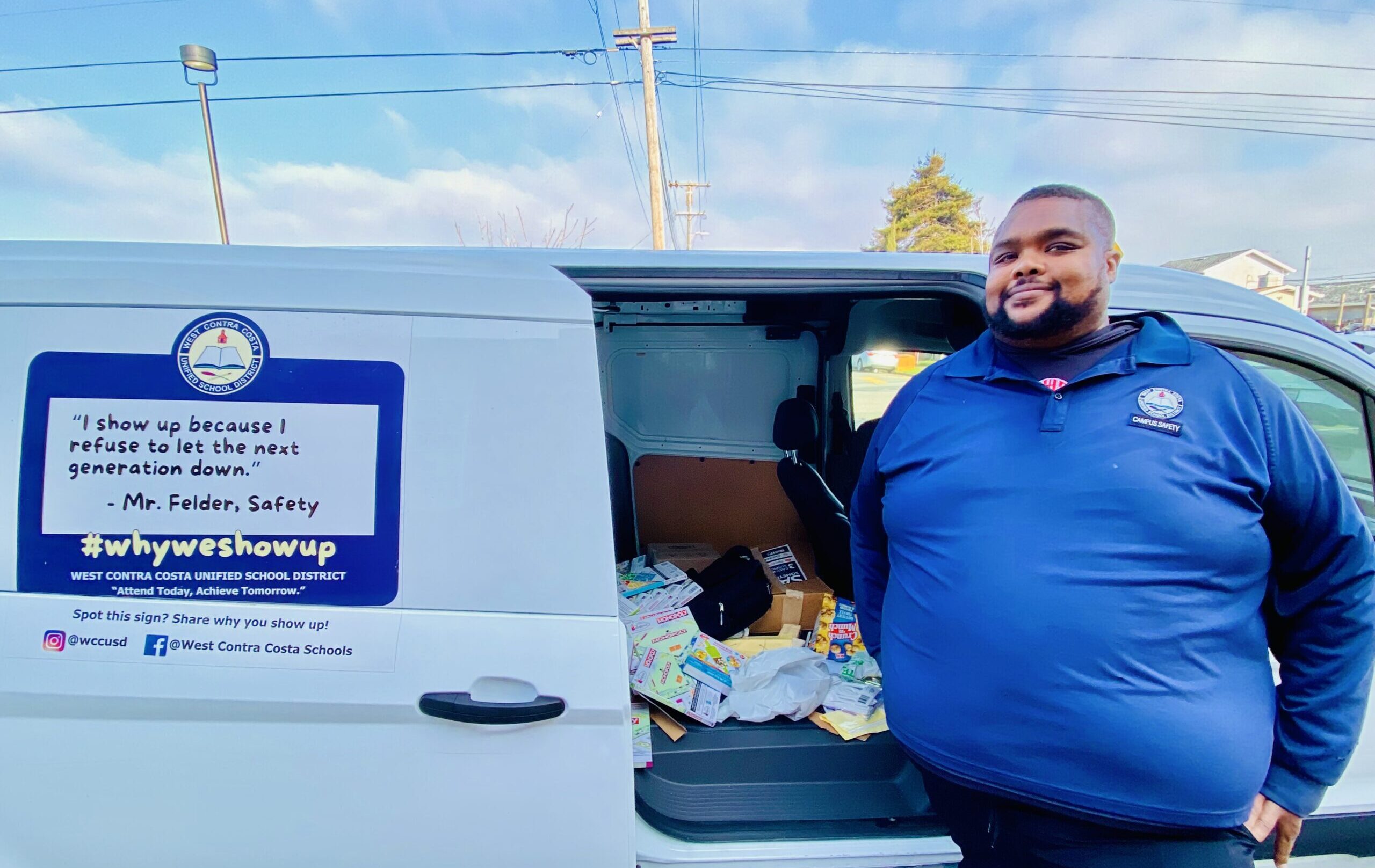 Through his safety work at the WCCUSD, the coach also is responsible for overseeing the security of 15 school campuses in the district. During the holidays, he’ll be delivering presents to a number of those schools, including at Kennedy High. The coach was quick to give a shout-out to his colleagues, who greatly helped support the gift-giving effort.