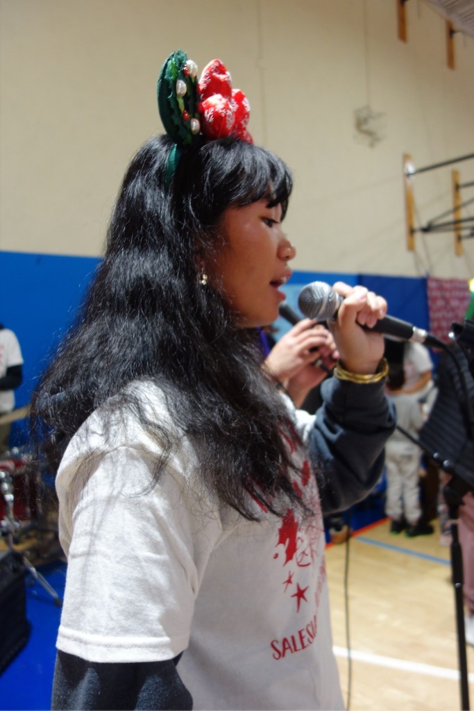 The Salesian Choir heavily contributed to the holiday spirit with live performances of classic carols. With Ysabella Tessendorf on piano she “I really enjoyed accompanying the student singers!” said Bella. “There was such an exciting atmosphere, and even though I was a little nervous, it was fun.”
