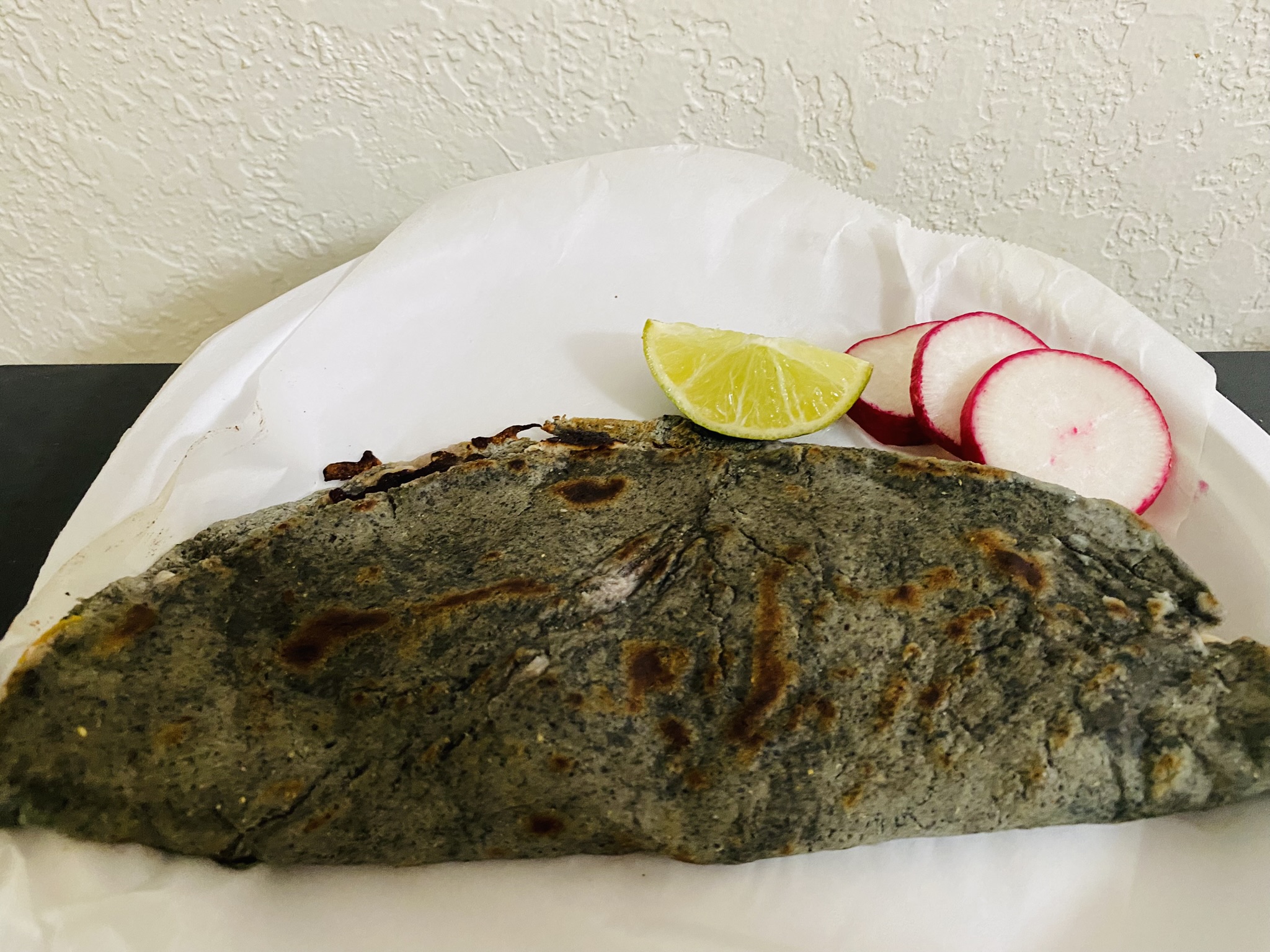The Standard had a chance to taste the Cemita de Carnitas with carnitas, queso, “green gold”—a.k.a. avocados—seasonings, and the special bun. It was incredibly tasty, as were the Quesadilla with Huitlacoche and Taco de Carnitas. Various menu items are available to be ordered as desired, such as with different meats, pumpkin blossoms, grasshoppers (chapulines), corn smut (huitlacoche), etc., with the huitlacoche and pumpkin blossoms being especially touted by Ulises. The food truck also features blue corn tortillas made by hand, red and green salsa with a spicy kick, and a variety of agua fresca flavors.