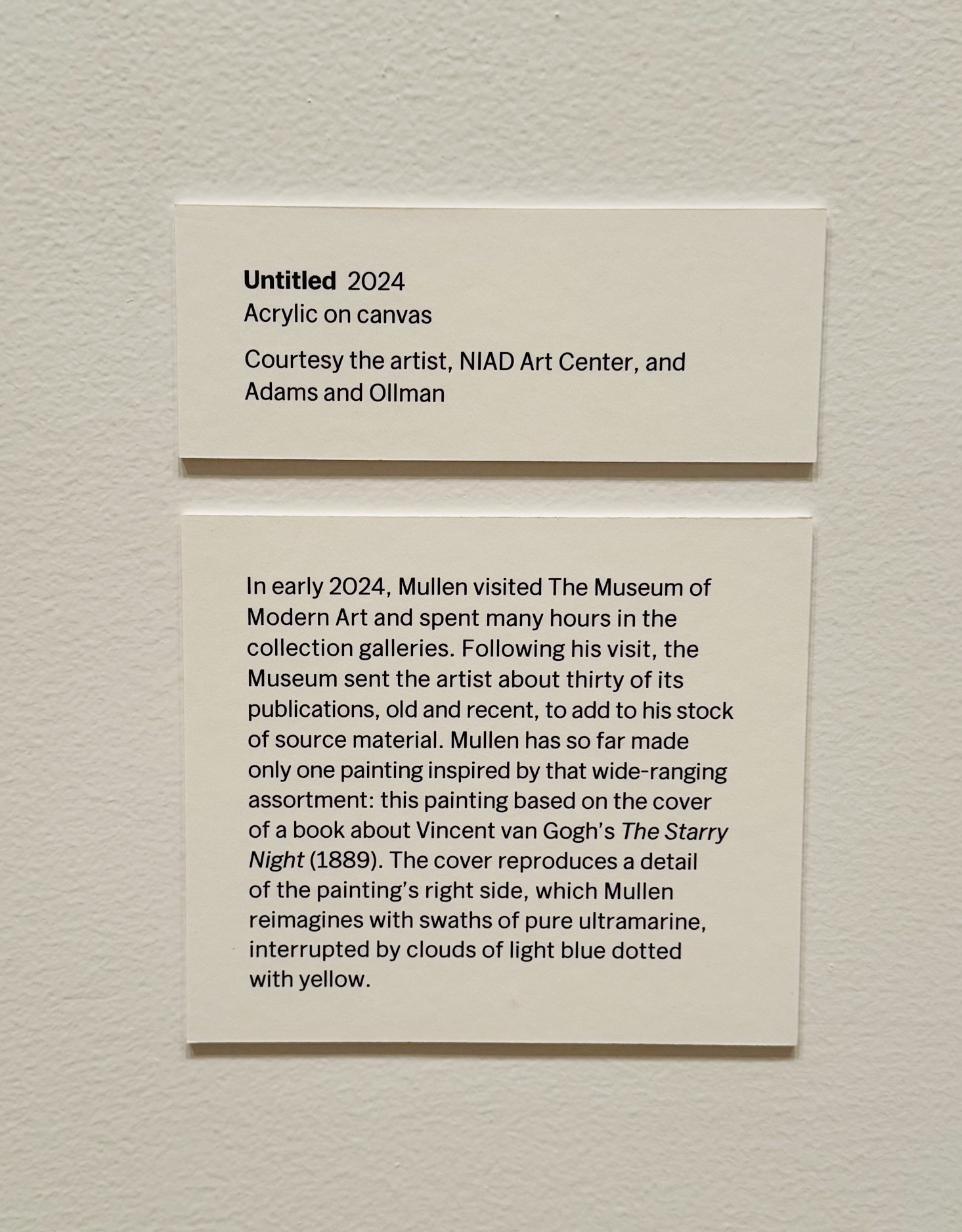 Mullen, a Richmond native, exhibited 25 works of art at the preeminent American museum in midtown Manhattan over Dec. 14, 2024 through this past weekend. NIAD Executive Director Amanda Eicher and her team worked with The Marie-Josée and Henry Kravis Chief Curator of Painting and Sculpture Ann Temkin and Curatorial Associate Alexandra Morrison on developing Mullen’s exhibition.