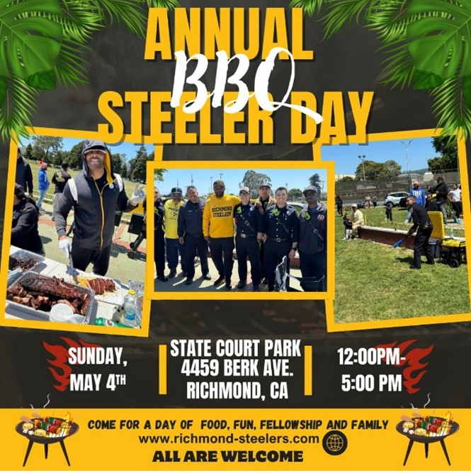 The Richmond Steelers youth football team is hosting its “Annual Steelers Day BBQ” Sunday, May 4 from 12-5 p.m. at State Court Park in Richmond.