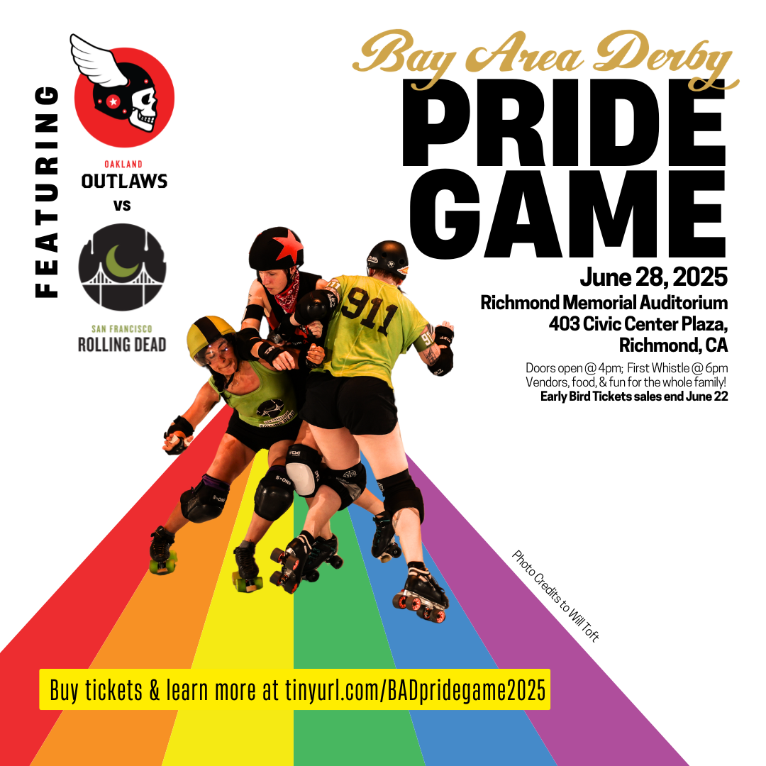 This Saturday night at Richmond Memorial Auditorium, the Bay Area’s beloved roller derby rivals—the Oakland Outlaws and San Francisco Rolling Dead—come together for a vibrant celebration of community, competition and pride.