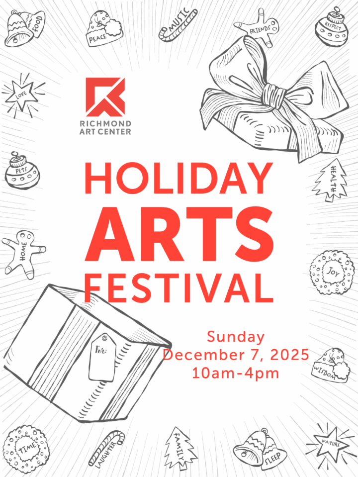 The Holiday Arts Festival takes place at the Richmond Art Center, 2540 Barrett Avenue in Richmond. Questions? Contact the Richmond Art Center at (510) 620-6772 or [email protected].