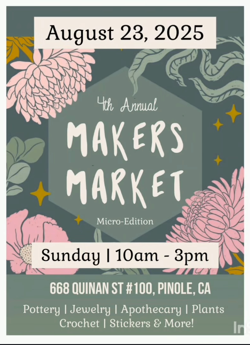 Visit the Makers Market on Saturday in the back lot at 668 Quinan St., #100, in Pinole. Questions? Contact Samantha Marie at [email protected].