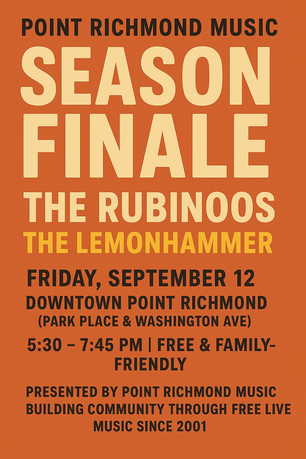 Point Richmond Music will close out its free 2025 outdoor summer concert series this Friday, Sept. 12, with performances by The Rubinoos and The Lemonhammer.