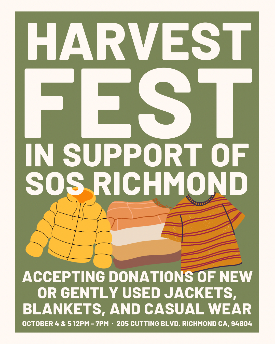 Kauffman said Harvest Fest is an all-ages, family friendly, community event “to give back to SOS Richmond and bring the community together.” A $5 donation will be requested at the door to benefit the nonprofit focused on solutions for homelessness. Good eats, seasonal craft beer releases, cider and wine will also be served.