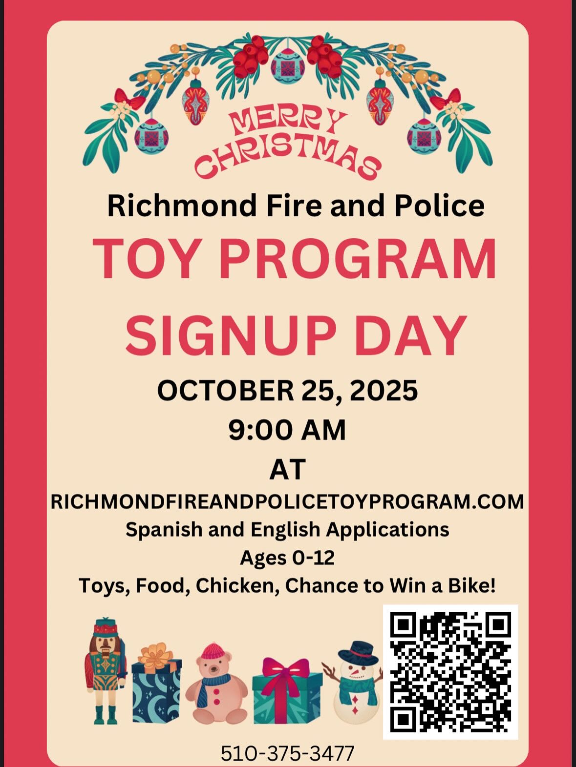 Sign-ups open Saturday, Oct. 25, at 9 a.m. through the program’s official website. Applications are limited to the first 600 families, and all West Contra Costa County residents are eligible. Selected families will receive gifts, food, and a chance to win a new bicycle at the Dec. 20 giveaway event.