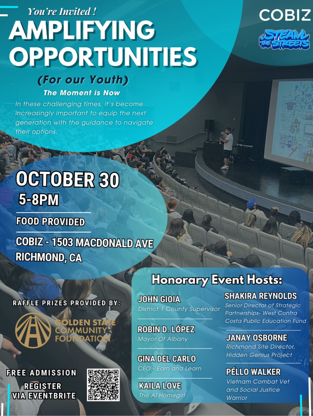 On Wednesday, October 30 (5–8 PM), STEAM the Streets and CoBiz Richmond will host Amplifying Opportunities, a free event aimed at fostering pathways for youth through education, mentorship and creative collaboration.