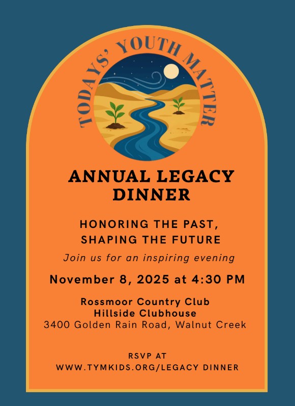 Today’s Youth Matter (TYM), a faith-driven, Richmond-based nonprofit that works to transform the lives of urban youth and families, will host its 2nd Annual Legacy Dinner Celebration on Saturday, Nov. 8, from 4:30-7:30 p.m. at the Rossmoor Country Club in Walnut Creek.