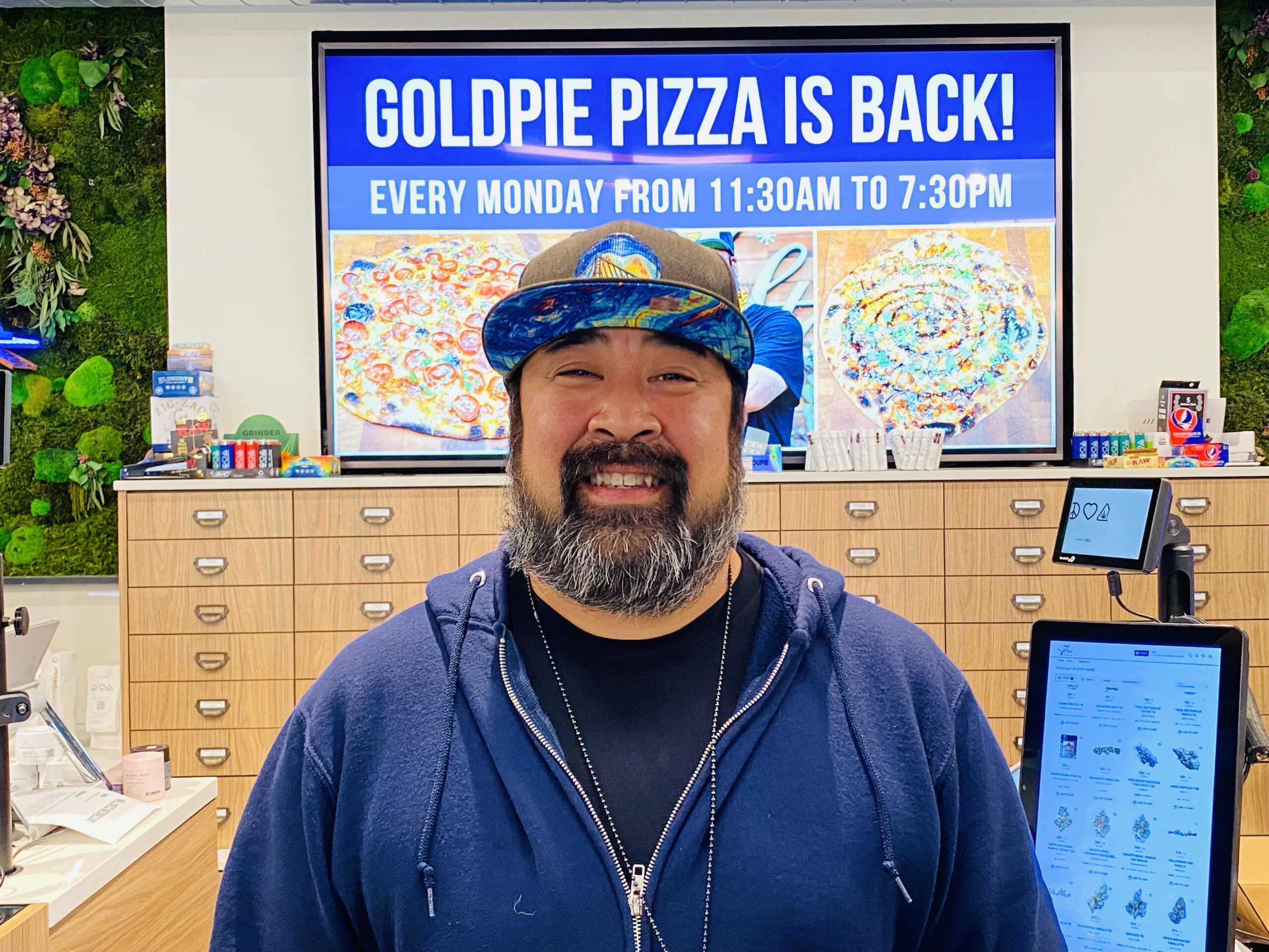 Every Monday, staffer Scott Hataye pops-up at the cannabis dispensary with Goldpie Pizza, serving 12-inch pizzas from 11:30 a.m. to 7:30 p.m. “He makes amazing pies,” says 7 Stars Co-Founder Zee Handoush, who helped get the pop-up rolling. The style? Hataye says his pizzas are a crispy, thin hybrid of tavern, Neapolitan and New York. “If you come in…within five to ten minutes, your pizza is ready on your way out,” added Handoush. Monday munchies, solved.