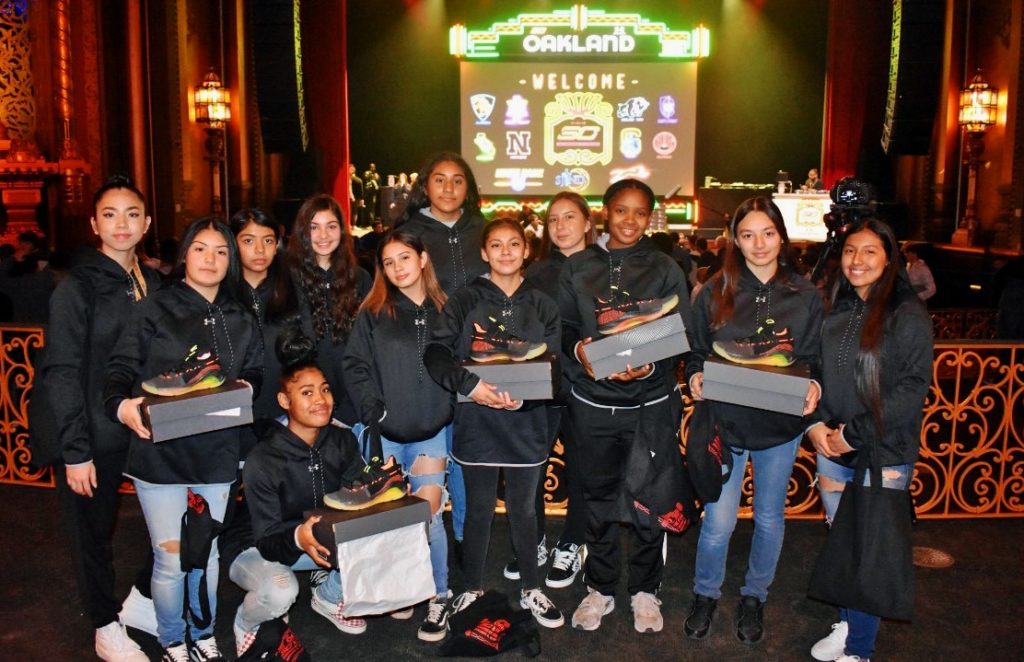 They were among about a dozen high school basketball programs in the Bay Area receiving early entrance to the party. Curry put on the event to celebrate 10 years in Oakland and to promote his Curry 6 Fox Theater colorway Under Armour shoes.