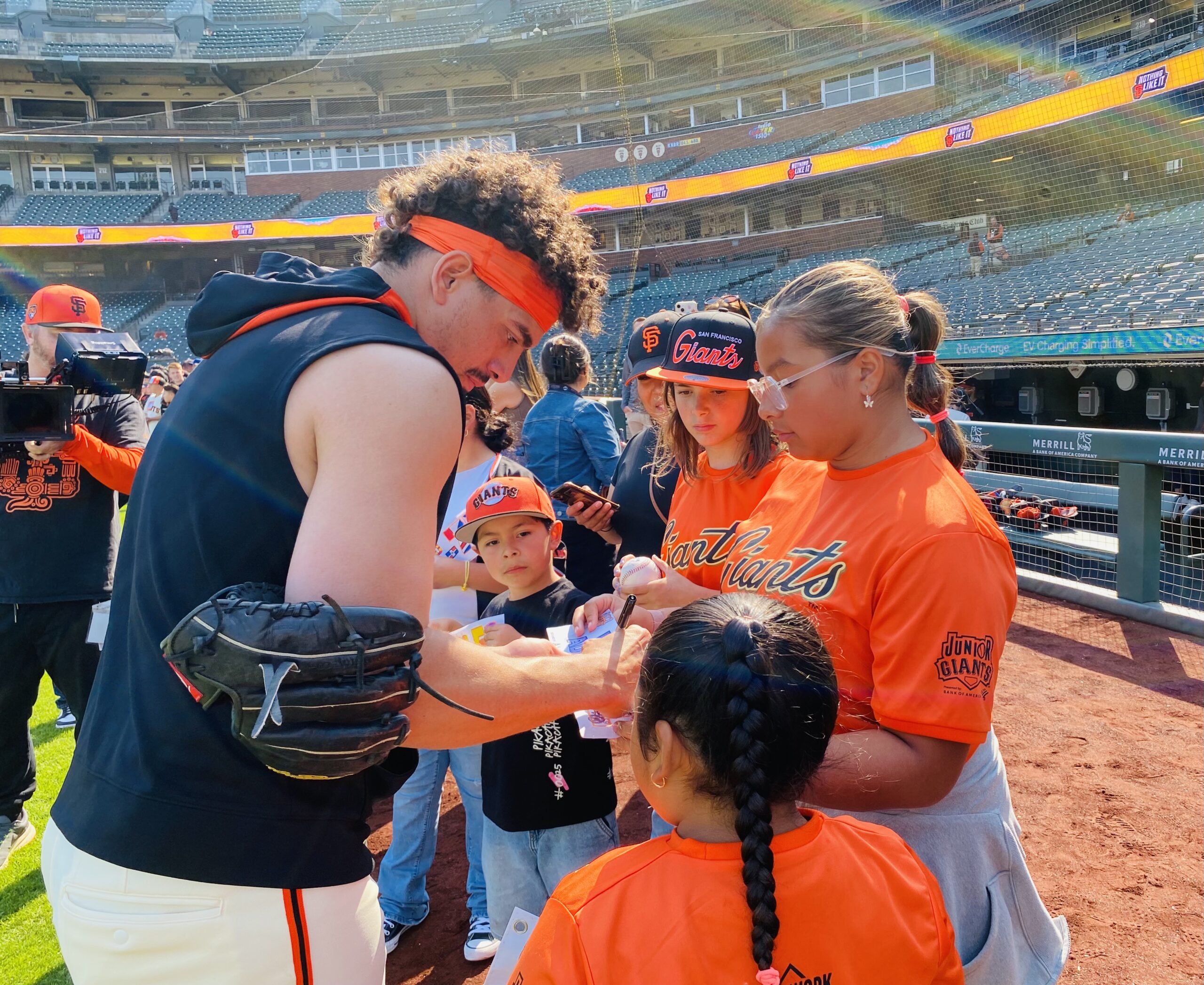 One by one, San Francisco Giants including Jung Hoo Lee, Heliot Ramos, Randy Rodriguez, Wilmer Flores, Casey Schmitt, Willy Adames and others visited the Junior Giants on the sidelines to sign banners, baseballs and pose for photos, much to the delight of the kids. Check out the Junior Giants experience here.
