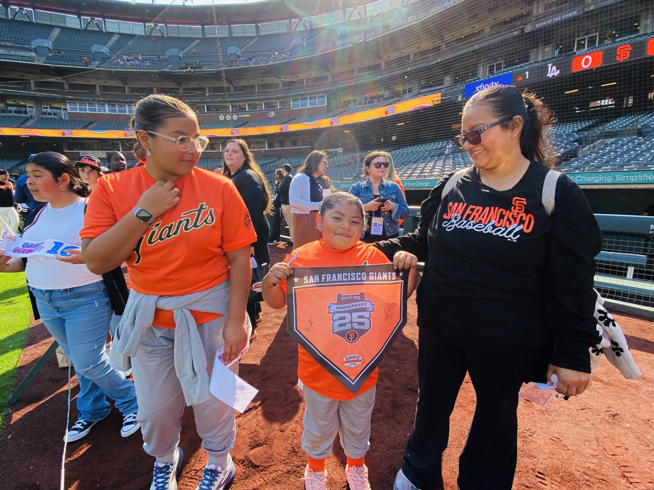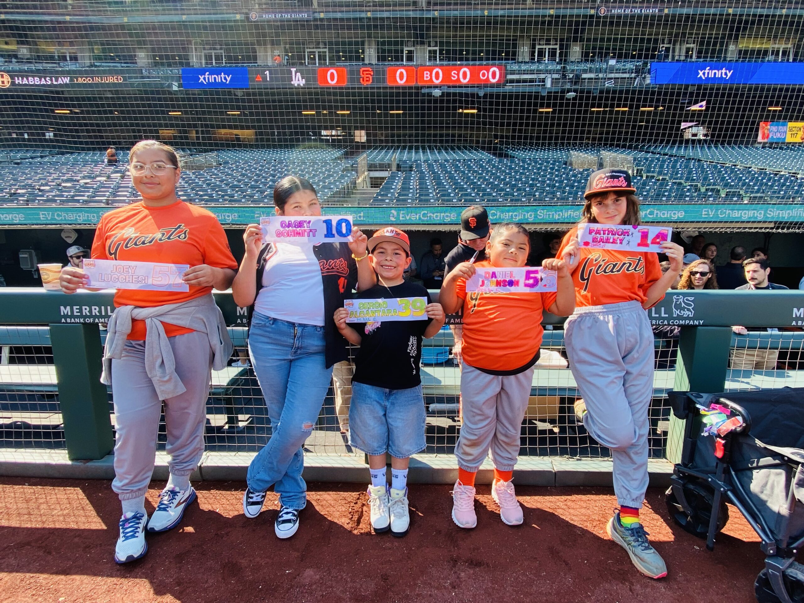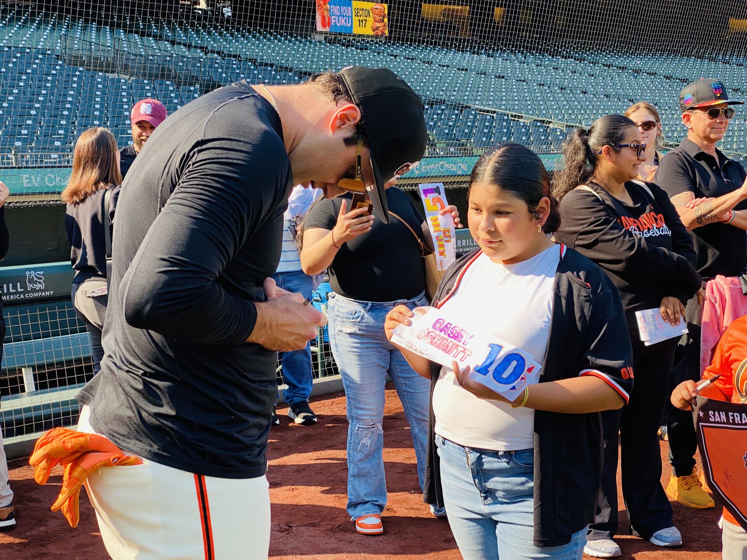 Stephanie Vasquez, a Richmond resident who is the coach of the Junior Giants and also works for the Giants Community Fund, said, “It was really amazing for me to be able to give them the opportunity to come out here, enjoy a game, but also have such a special experience with players acknowledging them and all their work coloring the name plates.” She added that it’s great to see that the kids have these opportunities that they don’t get every day.