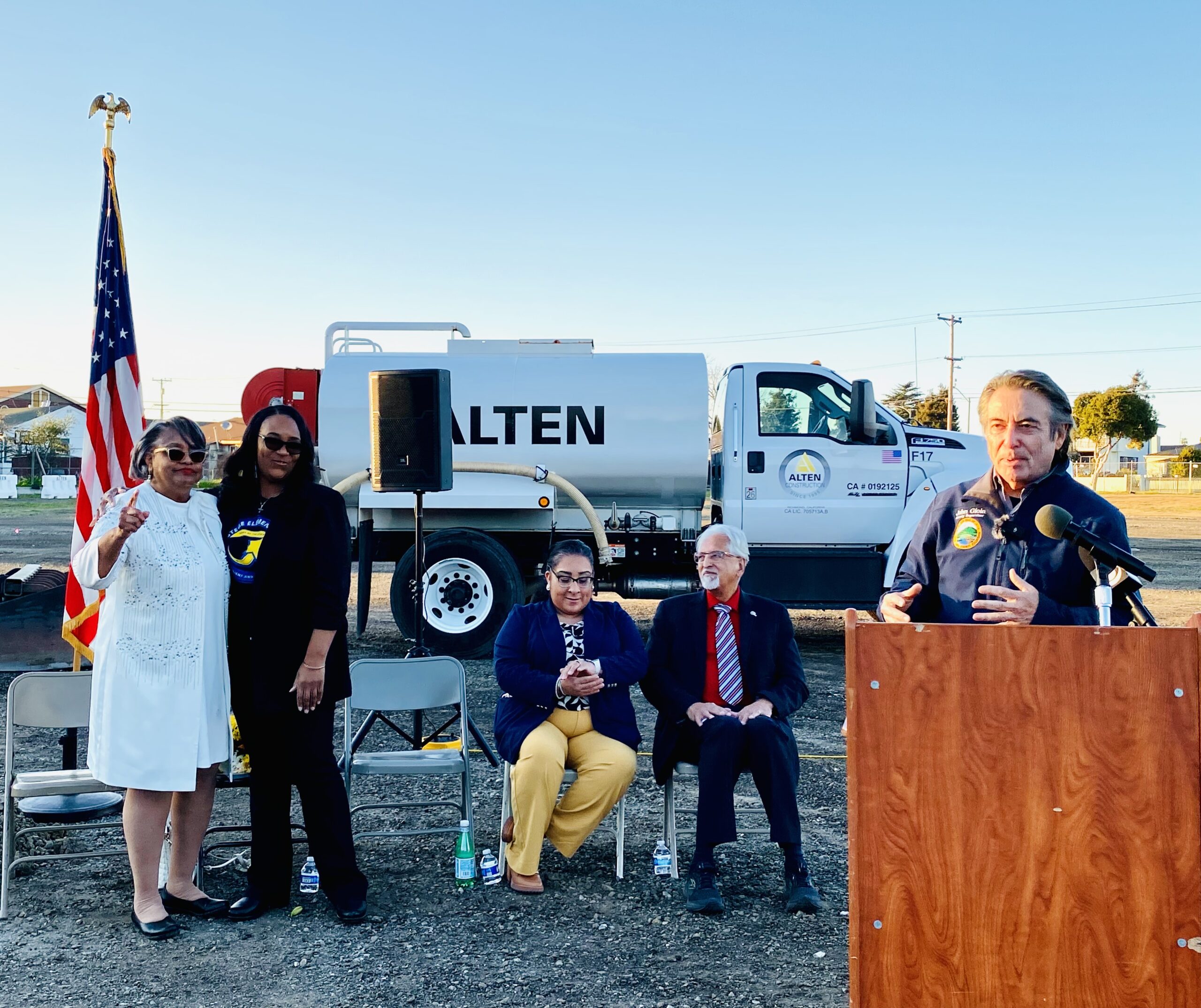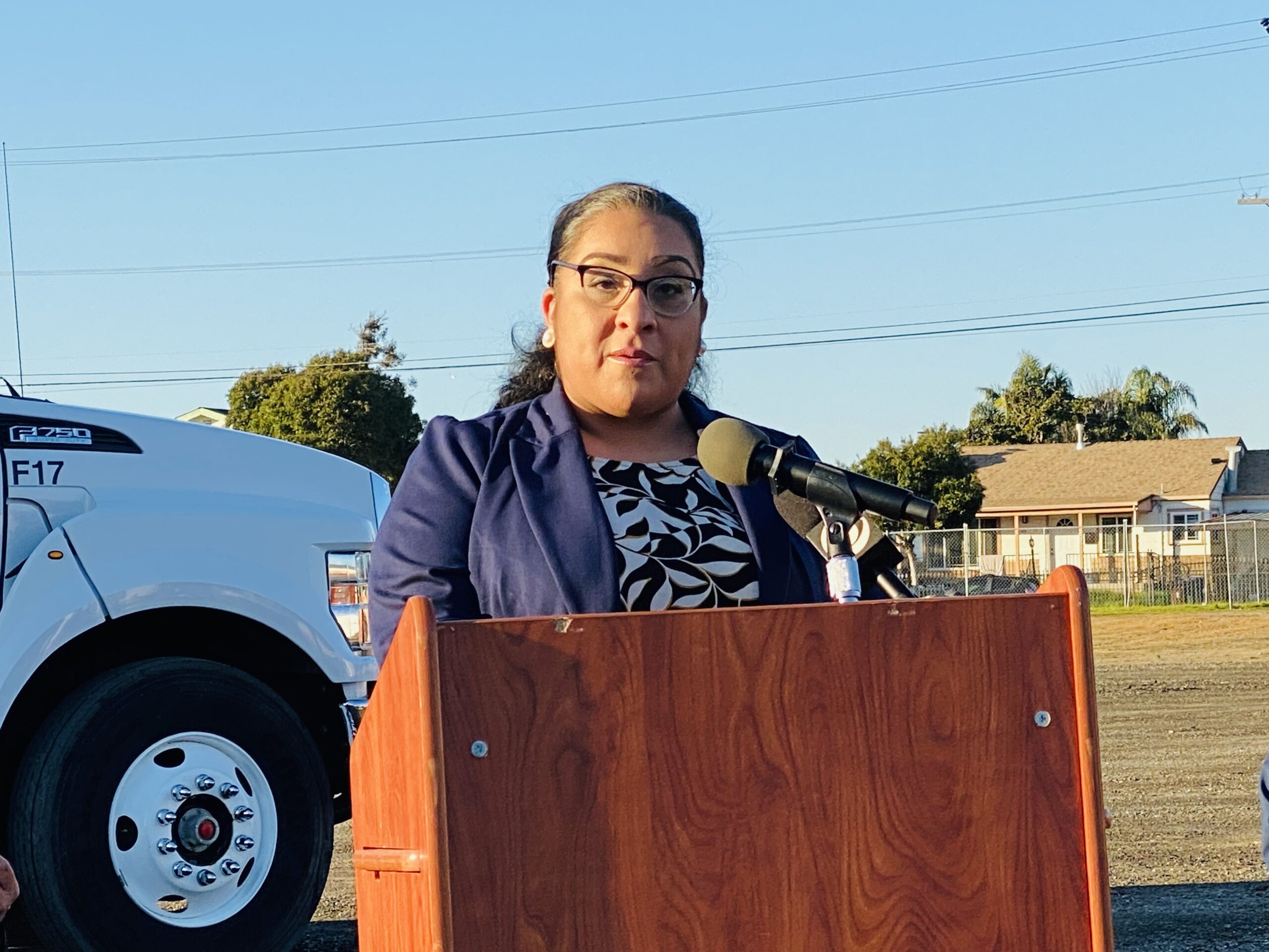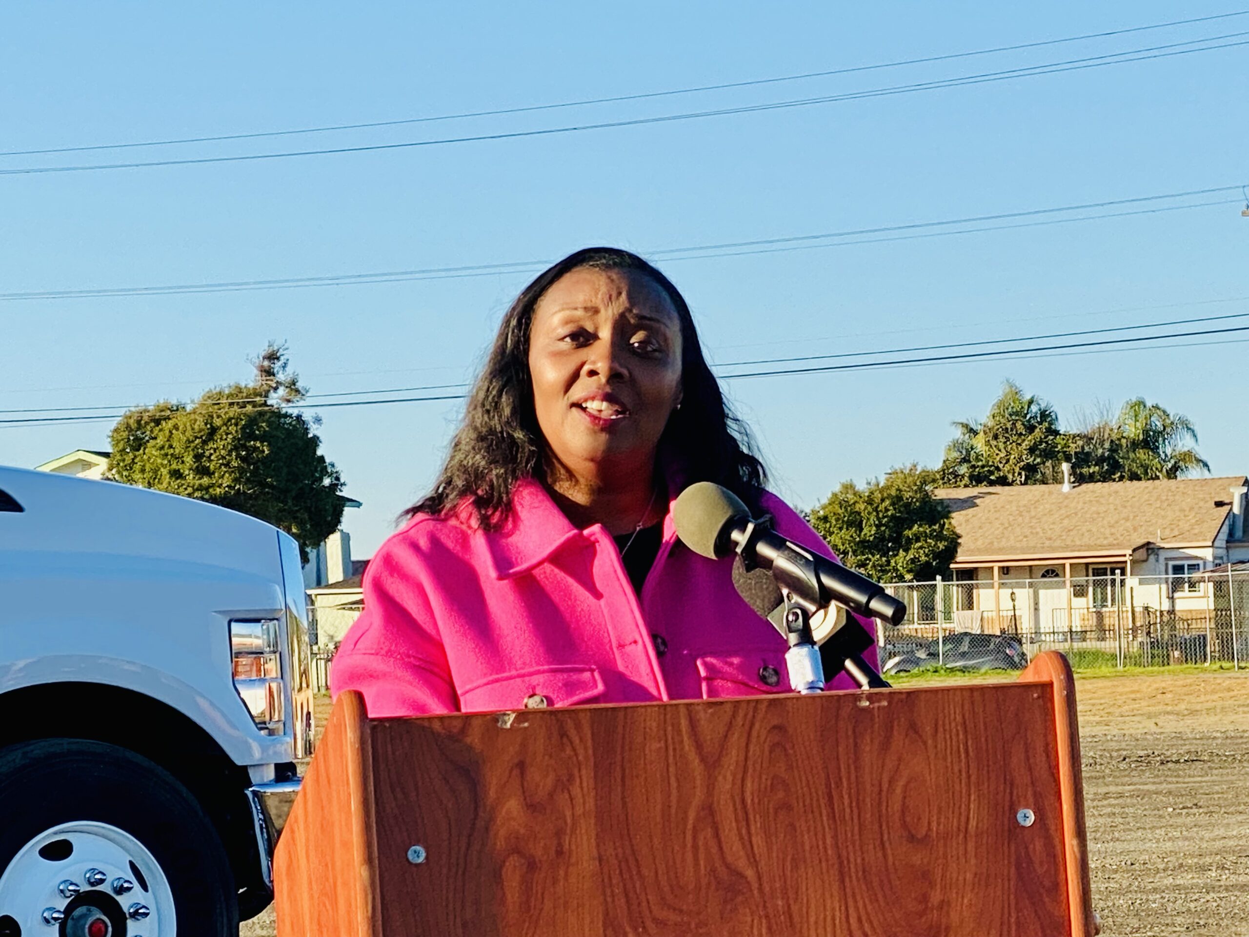 Before an American flag and an Alten Construction truck, the outdoor celebration featured remarks from members of the “Stege Village” group that helped launch the project, including WCCUSD Superintendent Cheryl Cotton, the School Board’s Guadalupe Enllana and Demetrio Gonzalez-Hoy, Stege Principal Claudia Velez and the district’s Ellen Mejia Hooper, as well as County Supervisor John Gioia, Mayor Eduardo Martinez and other partners. Current and former students, neighbors, community members, construction personnel and architects were also highlighted.