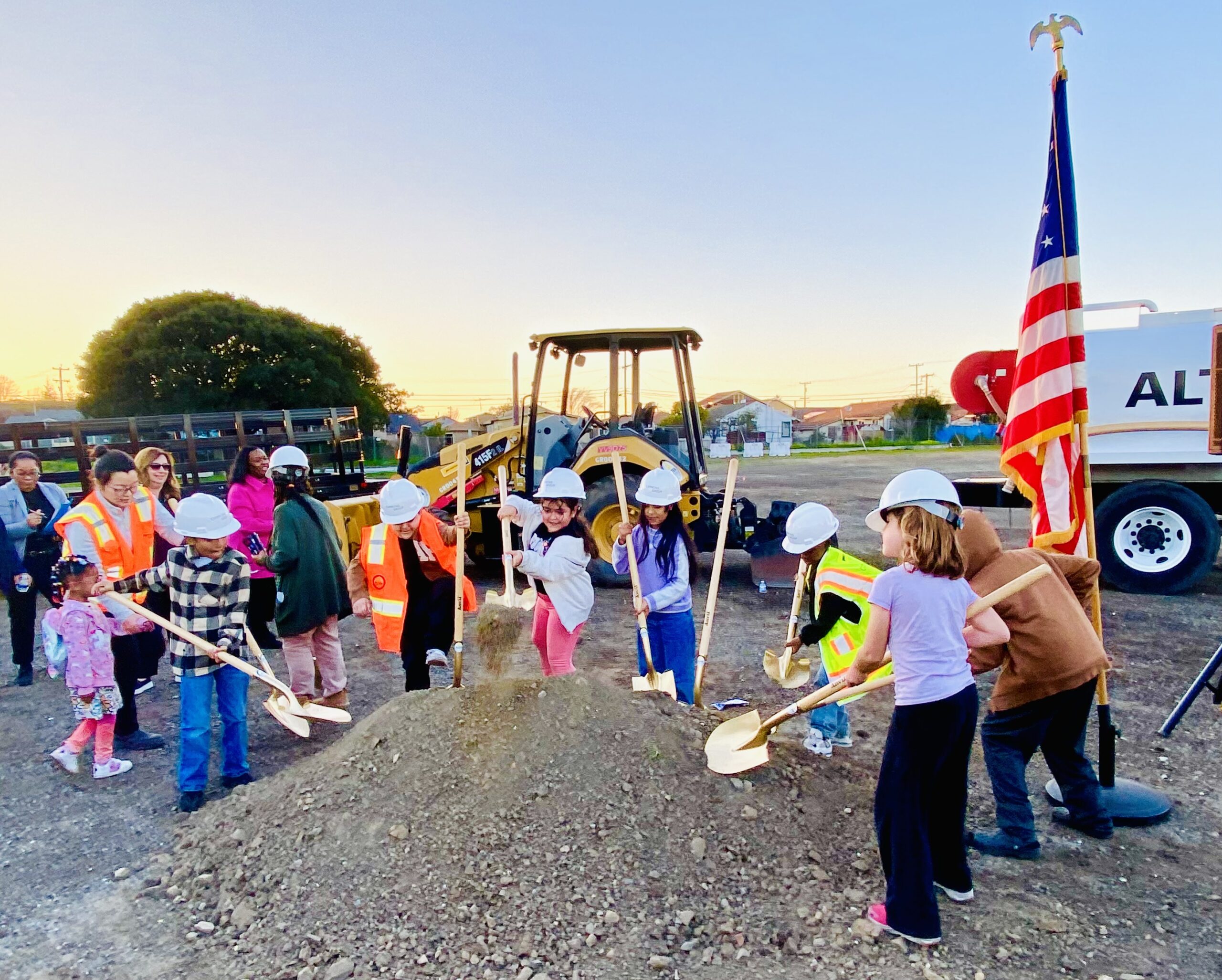 At the end of the groundbreaking ceremony, Stege students led the crowd in a school song. Then the “Stege Village” group gathered by a dirt pile, grabbed shovels and officially broke ground. After this, the school’s students took over the shovels and broke some ground of their own.